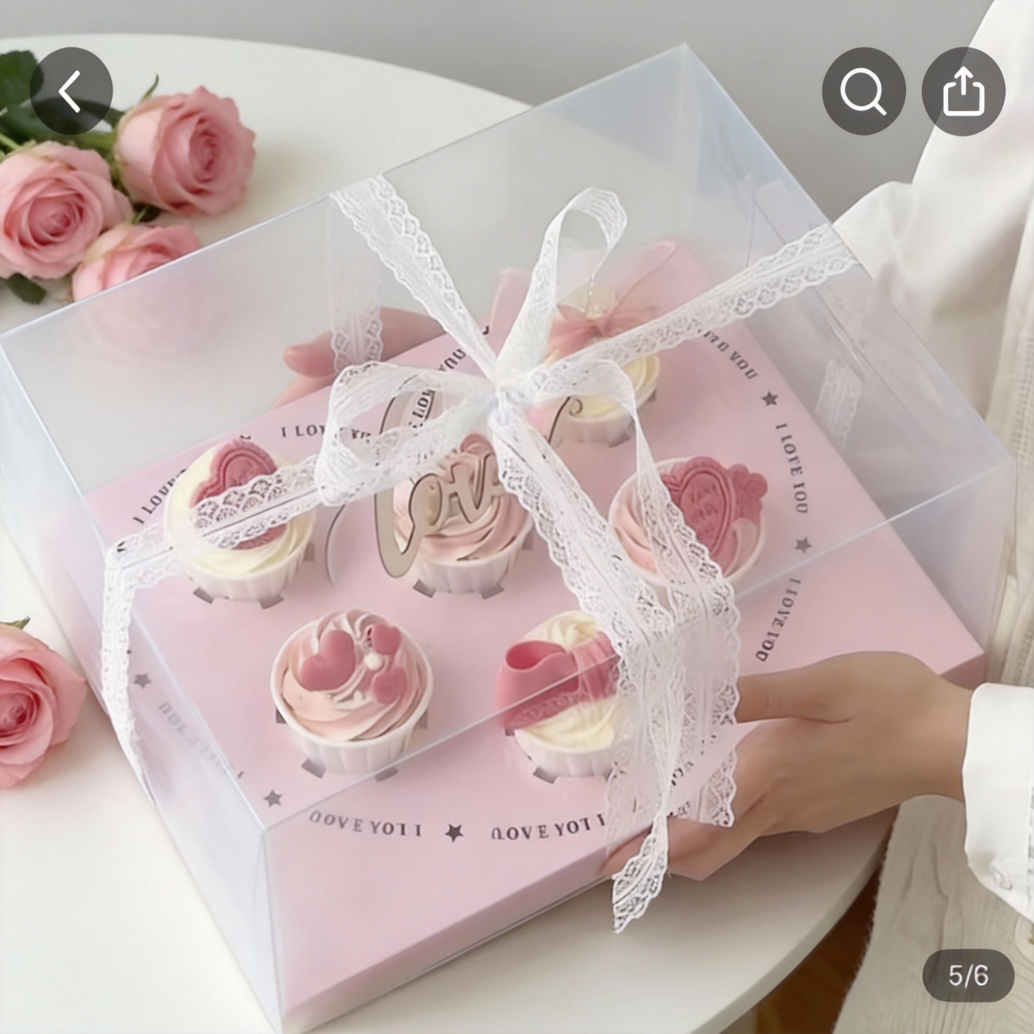 Elegante doos voor 6 cupcakes met  beetje melk transparant deksel  – perfect voor Valentijnsdag, Moederdag en andere speciale gelegenheden Bent u op zoek naar een unieke verpakking voor cupcakes die hun bijzondere karakter benadrukt? Onze doos voor 6 cupcakes in hartvorm is de perfecte keuze voor banketbakkers, restaurants en particulieren die kwaliteit en esthetiek waarderen. De doos is vervaardigd uit duurzaam, ecologisch karton dat de veiligheid en versheid van uw gebak tijdens transport garandeert. Met afmetingen van 27,5 x 23,5 x 14 cm biedt deze doos voldoende ruimte voor 6 standaard cupcakes. De verfijnde hartvorm accentueert elke feestelijke gelegenheid – van Valentijnsdag tot Moeder- en Vaderdag. Belangrijkste voordelen: – Geschikt voor 6 cupcakes – Unieke hartvorm – benadrukt de exclusiviteit van uw cadeau – Stevig en milieuvriendelijk karton – voedselveilig en duurzaam – Ideaal voor Valentijnsdag, Moederdag, Vaderdag en andere feestdagen – Afmetingen: 27,5 x 23,5 x 14 cm Bestel vandaag nog een stijlvolle cupcake-doos en laat uw gebak niet alleen door smaak, maar ook door presentatie indruk maken!