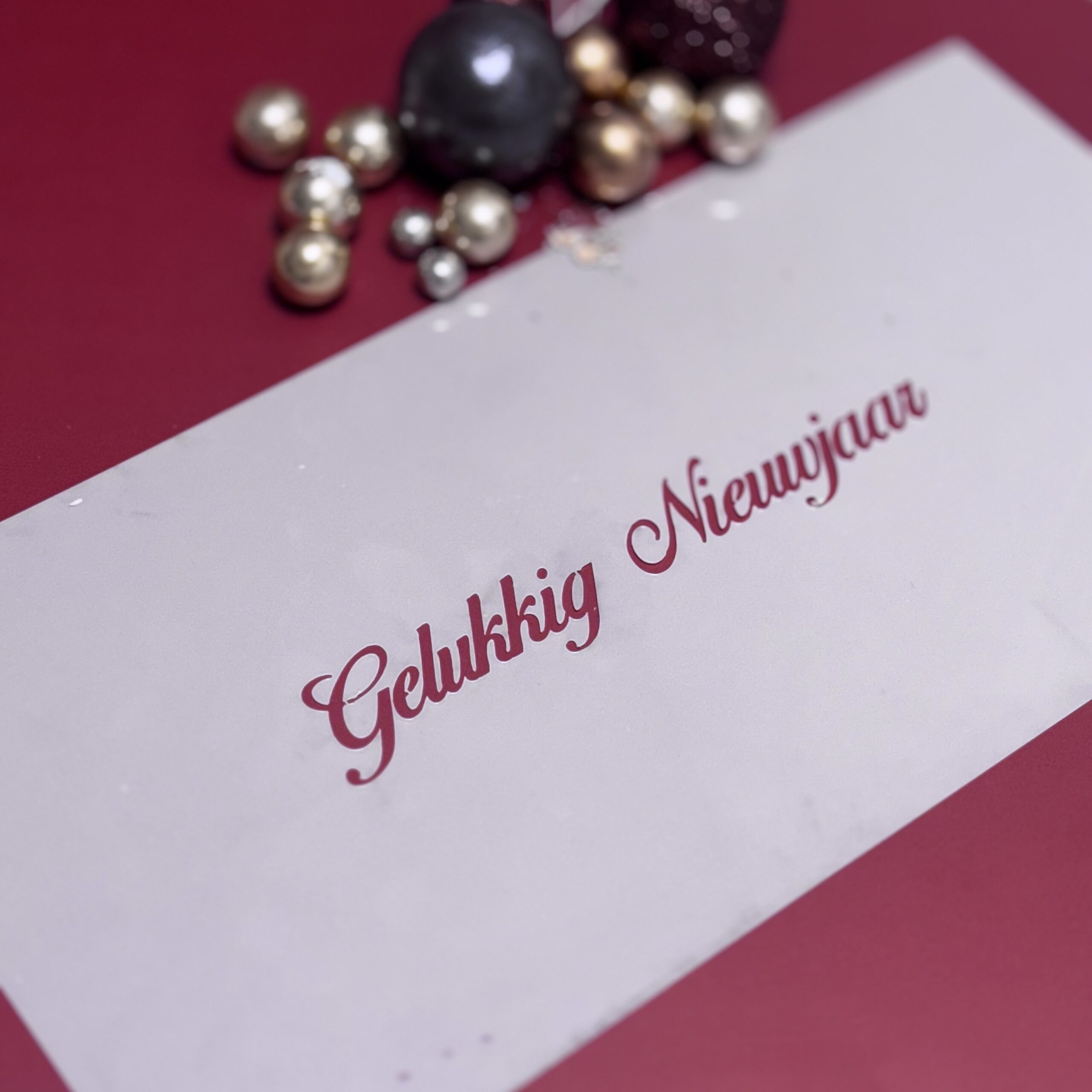 Voeg een feestelijke touch toe aan jouw taarten, cupcakes of desserts met onze sjabloon met de tekst “Gelukkig Nieuwjaar”. Perfect om je zoetigheden een elegante en stijlvolle uitstraling te geven tijdens de jaarwisseling!
